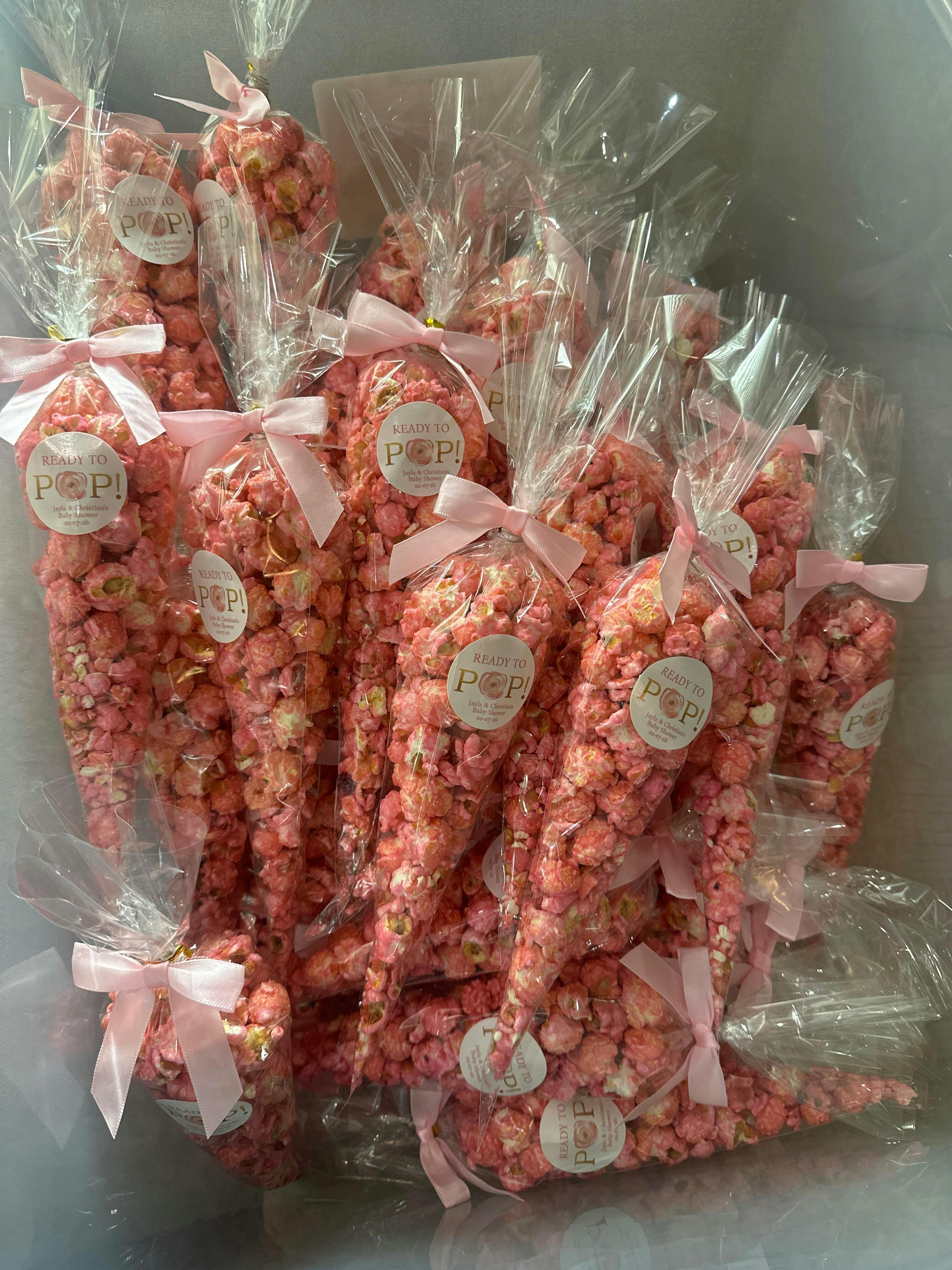 The popcorn was perfect for my baby shower favors! The strawberry (pink) flavored popcorn was delicious and was the perfect touch! Was very timely on shipping and was fresh on arrival- everyone loved it!